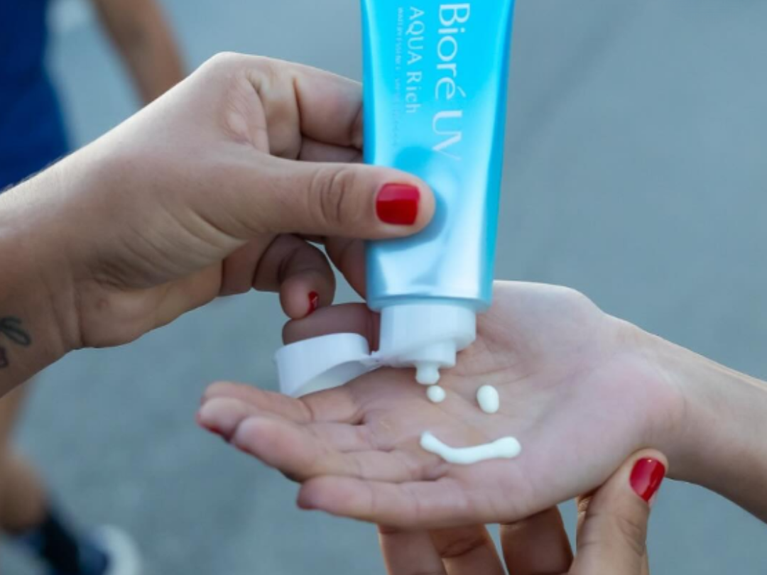 - Com o rosto e as mãos secos, aplique 3 pumps do produto nas mãos.